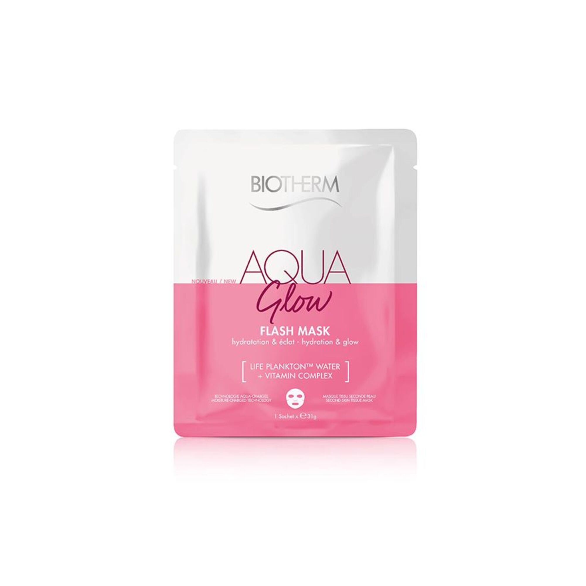 Entdecke die Aqua Glow Tuchmaske von Biotherm – passend zu den Aqua Super Concentrate!