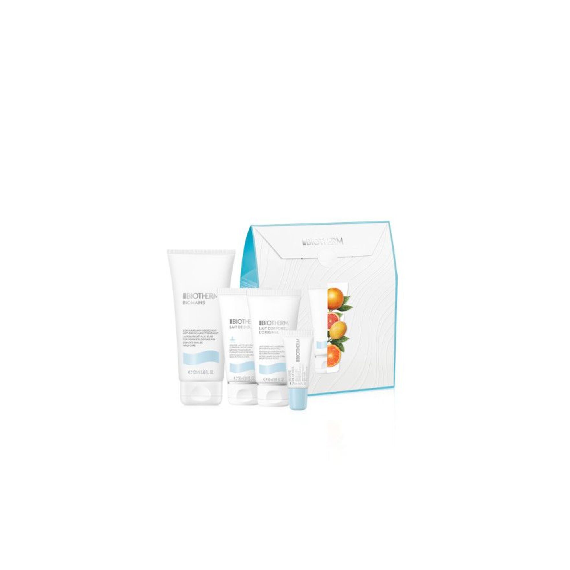 Ein Körperpflegeset mit Zitrusessenzen und intensiv feuchtigkeitsspendenden Wirkstoffen. Reinigende Dusch-Milch - mit ultrafeuchtigkeitsspendenden Wirkstoffen und ätherischen Zitrusölen. Die Seifenfreie Milchtextur mit ultrafeutigkeitsspendenen Wirkstoffen parfümeriert, schützt und reinigt die Haut auf sanfte Weise. Unwiderstehlich weiche Lippen mit Beurre de Lèvres, der feuchtigkeitsspendenden Lippenpflege von Biotherm. Angereichert mit Inhaltsstoffen natürlichen Ursprungs überzeugt die Lippenpflege mit einer cremigen Textur, die sich sanft auftragen lässt und ein weiches und geschmeidiges Gefühl auf den Lippen hinterlässt. Die Biomains Handreme von Biotherm ist für die tägliche Hand- und Nagelpflege konzipiert. Sie stärkt Deine Haut und baut den natürlichen Schutzfilm wieder auf. Vitamin E und natürliche Feuchtigkeitswirkstoffe pflegen Deine Hände und schenken wertvolle Feuchtigkeit. Die Bodymilk Lait Corporel L'Original von Biotherm verwöhnt die Haut von Kopf bis Fuß und schützt sie vor dem Austrocknen. Die intensiv feuchtigkeitsspendende Formel mit Vitamin E und Biotech Plankton™ Extrakt stärkt die Hautschutzbarriere und unterstützt die Hautelastizität. Die Haut wird langanhaltend mit Feuchtigkeit versorgt, geglättet und seidig zart.