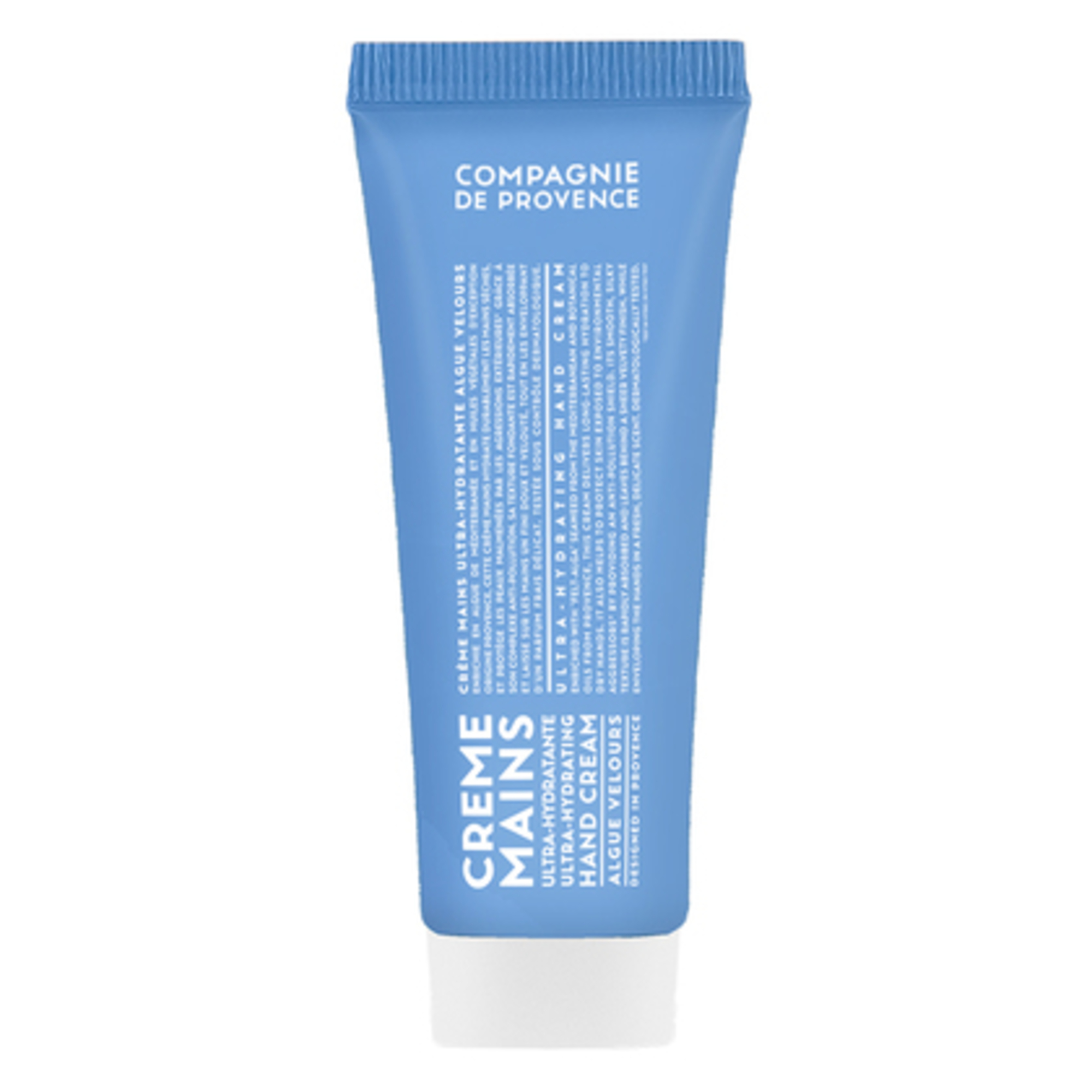 Die Handcreme Algue Velours von Compagnie de Provence schenkt den Händen mit Algen aus dem Mittelmeer und botanischen Ölen eine reichhaltige Pflege und samtige Geschmeidigkeit. Die ultracremige Textur spendet der Haut nach der Reinigung intensiv Feuchtigkeit, beruhigt und schützt sie vor äußeren Einflüssen. Die geschmeidige, seidige Textur zieht schnell ein, hinterlässt ein samtiges Finish und umhüllt die Hände mit einem frischen, zarten Duft.