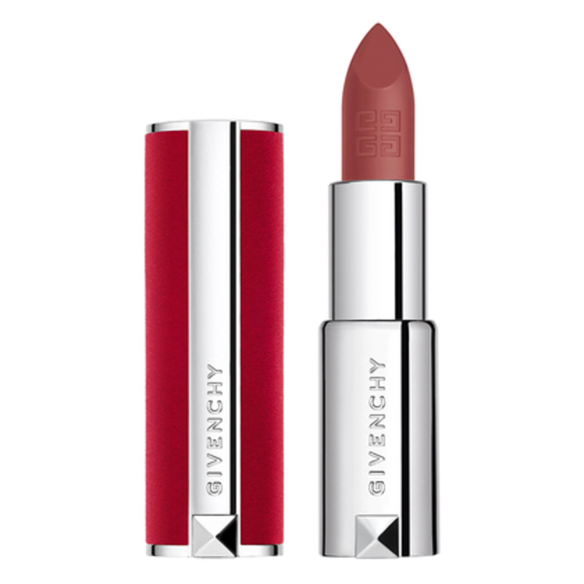 Le Rouge Deep Velvet verkö,rpert den eleganten und sinnlichen Charakter von Givenchy. Mit seinem pudrigen, matten Finish und der Hü,lle aus rotem Samt ist er die ultimative Ergä,nzung zu Ihrem Look.