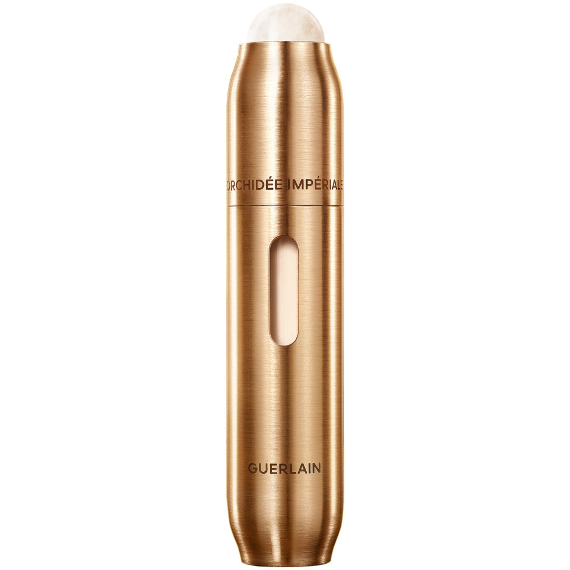 GUERLAIN kreiert die konzentrierte Augenpflege der Linie Orchidée Impériale Gold Nobile, um die Aura der Jugend in der Augenpartie aufzufrischen. In dem mit 95% Inhaltsstoffen natürlichen Ursprungs angereicherten Pflegeprodukt ist die verjüngende Kraft der außergewöhnlichen Orchidee Gold Nobile mit dem Chromatic Corrector Complex kombiniert, um die Zeichen der Jugendlichkeit zu restrukturieren und die farbliche Harmonie eines jugendlich strahlenden Blicks wiederherzustellen. Das Hightech²-Design umfasst ein integriertes Massageinstrument aus Gua Sha Jadestein, durch das sich die Wirksamkeit des Pflegeprodukts auf Falten und Krähenfüße verdoppelt³.