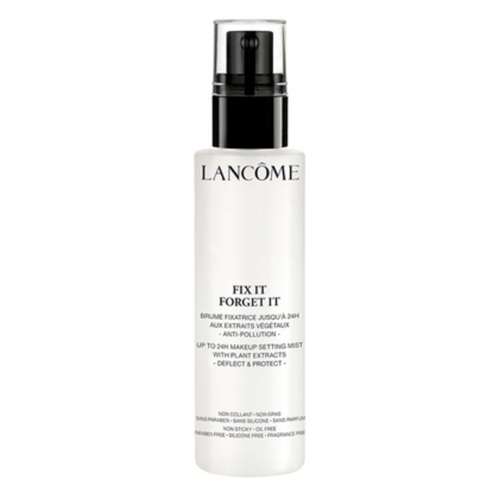 Lancôme bietet Fix It Forget It Setting Mist, einen Fixier-Spray, der das Make-up 24 Stunden lang halten lässt. Er erfüllt die Bedürfnisse der Frauen mit seiner transparenten, nicht klebrigen, federleichten Formel, die die Haut dank einer Anti-Pollution-Barriere schützt. Nach dem Auftragen des Make-ups aufgesprüht bietet er nicht nur lange anhaltenden Schutz, er umsorgt auch den ganzen Tag lang die Haut dank seiner wohltuenden Inhaltstoffe und den Anti-Pollution-Eigenschaften des enthaltenen Vitamin C, Moringa und Hyaluronsäure.
