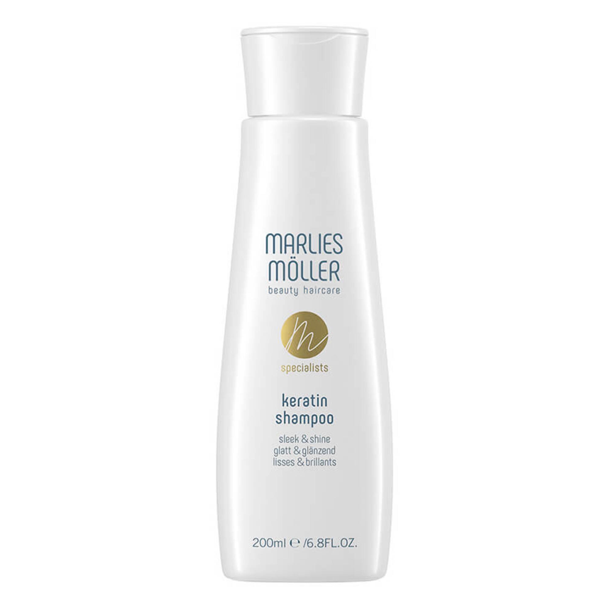 Der perfekte Sleek Look beginnt schon bei der Haarwäsche. Hoch konzentriertes Keratin füllt bereits während der Reinigung die geschädigte Haarstruktur auf, repariert brüchige Partien und stärkt das Haar von innen heraus. Kombiniert mit natürlichen Pflanzenextrakten und wertvollen Ölen verleiht das luxuriöse Shampoo dem Haar neuen Glanz, fließende Geschmeidigkeit und erhält es elastisch ohne zu beschweren. Der Anti-Frizz Effekt vereinfacht das Styling zum superglatten und wundervoll glänzenden Sleek Look.