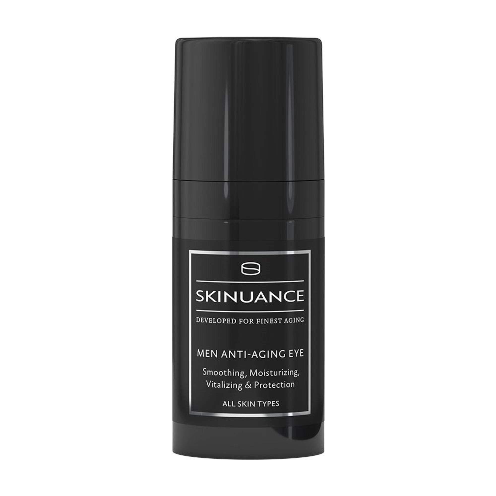 Der Wirkkomlex des MEN ANTI-AGING EYE Gel mit arktischen Meeresmikroorganismen, Gurkenextrakt und Vitaminen glättet sichtbar Falten und Linien, wirkt abschwellend, beruhigt, spendet intensiv Feuchtigkeit, schützt vor blauem Licht und strafft sichtbar.