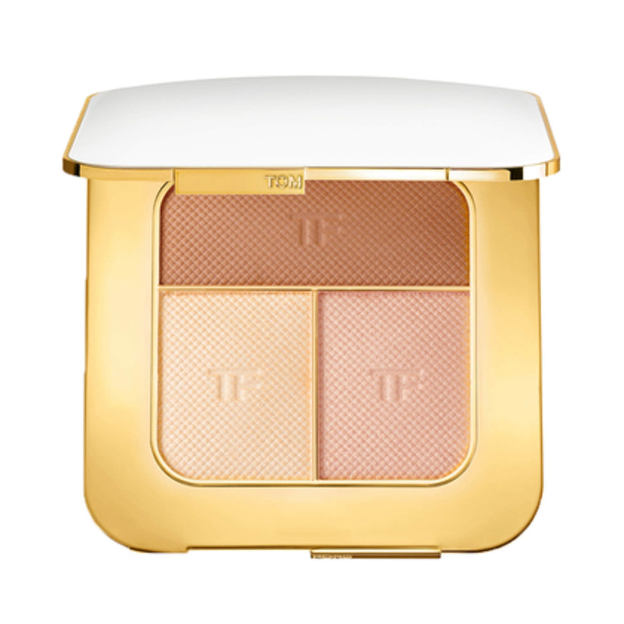 Tom Ford präsentiert drei sinnliche Sommertöne in einer elfenbein- und goldfarbenen Tom Ford Soleil Contouring Puderdose. Rouge, Highlighter und Bronzer verleihen natürliche Farbe und Dimension mit einer cremigen Puderformel, die sich mit einem weichen, gleichmäßigen Finish mühelos an die Haut schmiegt. Rosafarbenes Rouge verleiht Ihren Wangen die perfekte Röte, während Ihnen der rosafarbene Highlighter eine sonnenverwöhnte Haut und der temperamentvolle Bronzer ein gesundes Strahlen verleiht. Verwenden Sie die Farbtöne einzeln oder zusammen, um ein verführerisches, natürliches Leuchten zu erhalten. Bietet leichte bis mittelstarke Abdeckung, sowohl matt als auch glänzend. Geprägt mit dem Tom Ford Logo.
